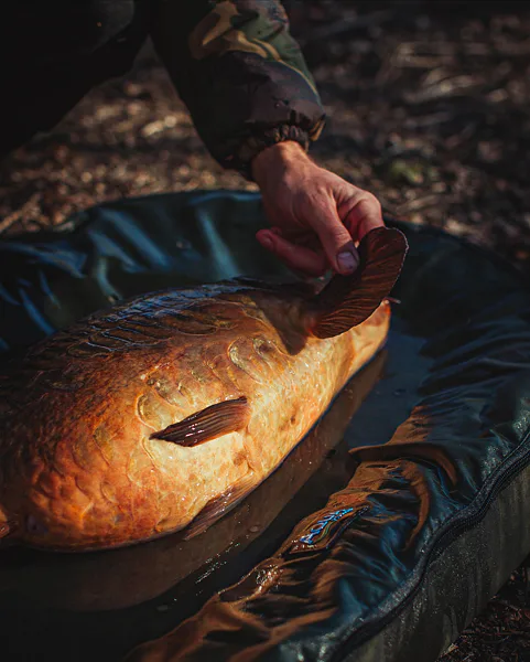 Podložka je vybavena hlubokou dvouvrstvou pěnovou výplní, která pohlcuje nárazy a vytváří bezpečné prostředí pro úlovek. Tato konstrukce zajišťuje rovnoměrné rozložení tlaku a chrání rybu před poraněním při pohybu či převracení. Rybám šetrný povrch z PVC zůstává příjemně hladký a nepoškozuje slizové vrstvy. Celkově je podložka navržena tak, aby poskytovala nejvyšší možný komfort a bezpečnost i při častém používání v terénu.