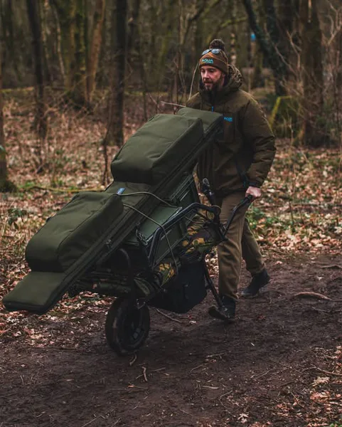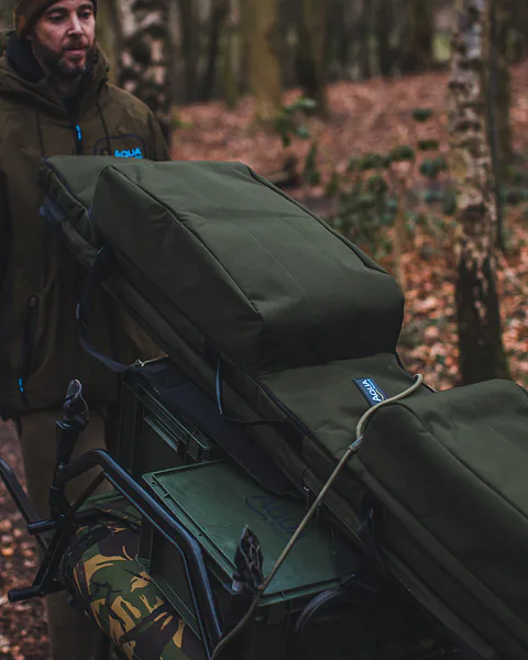 Obal je navržen tak, aby spolehlivě pojal pět připravených 12ft prutů, a zároveň ponechává dostatek místa pro 50mm naváděcí očka a velkokapacitní big pit navijáky. Vyztužená a silně polstrovaná sekce pro navijáky drží tvar a chrání citlivé komponenty před nárazy i tlakem během převozu.