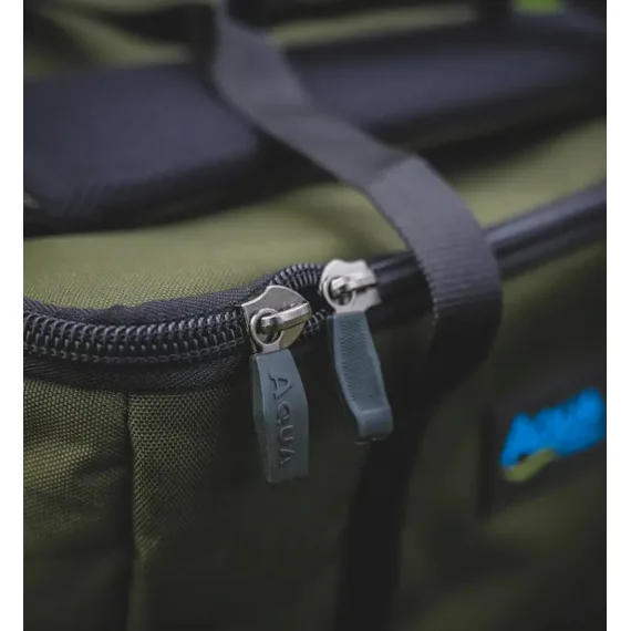 Taška je vybavena komfortním polstrovaným ramenním popruhem, který usnadňuje přepravu nádobí i na delší vzdálenosti. Pevná držadla umožňují rychlou manipulaci během příprav stanoviště nebo přesunů mezi místy. Kvalitní materiály a pevné švy zajišťují stabilitu tašky i při plném zatížení, což výrazně zvyšuje komfort při každodenním rybářském provozu.
