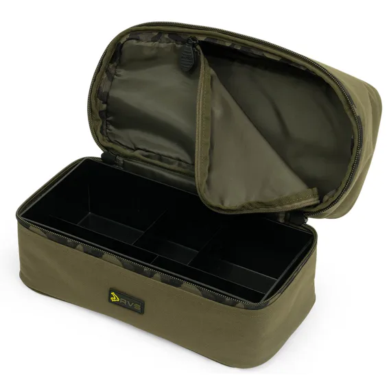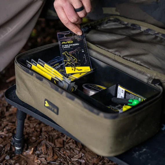 Díky dvěma odděleným stranám a dodávanému plastovému organizéru umožňuje snadno uložit koncové montáže, PVA materiály, olova nebo malé krabičky. Odolná konstrukce z 600D Oxford tkaniny v camo provedení Avid je doplněna robustními zipy a spolehlivě chrání obsah i při častém používání.