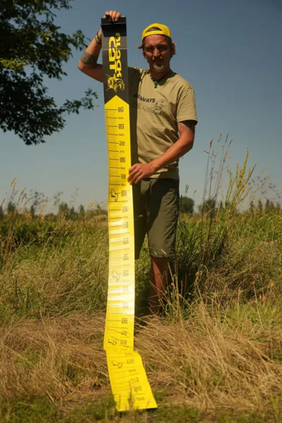 Pro přepravu se metr jednoduše sroluje do koncového bloku a zajistí odolným páskem, díky čemuž zabírá minimum místa ve výbavě. Celková délka 3 m poskytuje dostatečný rozsah i pro měření trofejních sumců, což z něj činí nezbytný doplněk výbavy každého sumcaře.