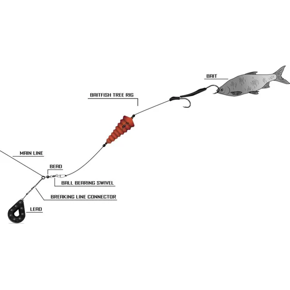 Hotový návazec „Baitfish Tree Rig“ se skvěle hodí pro prezentaci nástražních ryb a jiných přírodních nástrah těsně nade dnem.