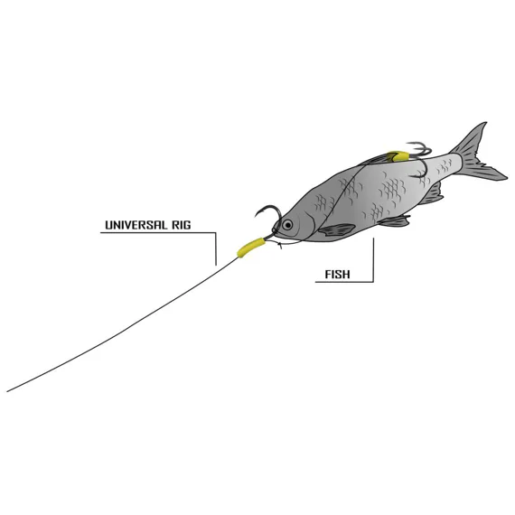 Hotový návazec Universal Rig od výbce Black Cat se skvěle hodí pro nástražní ryby a přírodní nástrahy při prezentacích na montážích s bójemi, splávky a na dno.
