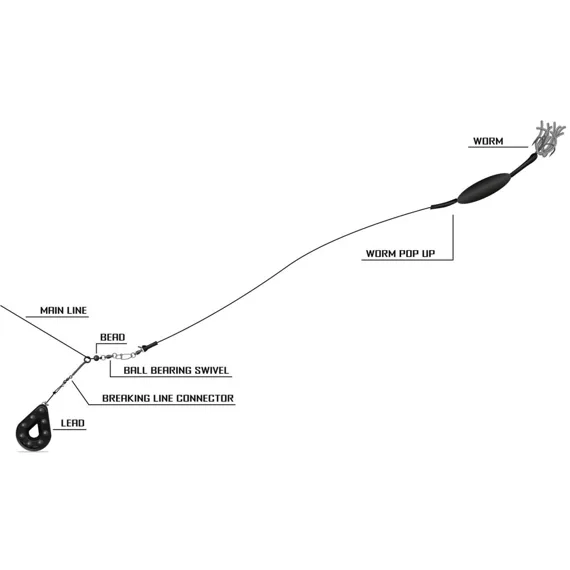 Hotový návazec Worm Pop Up se hodí pro velmi účinnou prezentaci svazku rousnic ve stojatých a pomalu tekoucích vodách těsně nade dnem.
