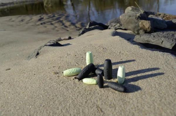 Olovo v matně černé barvě, určené pro různé styly lovu sumců.