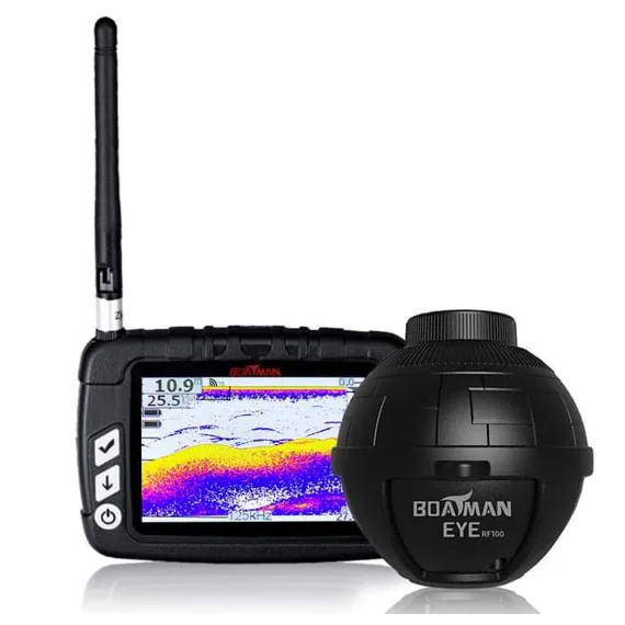 Rybářský bezdrátový, nahazovací sonar Boatman RF100 s 3,5“ barevným displejem a rozlišením 320×480 px dokáže skenovat až 20× za sekundu v úhlu až 30 stupňů.