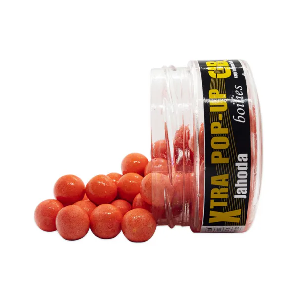 Carp Inferno Pop-Up Boilies XTRA – Jahoda je vysoce atraktivní plovoucí boilies pro celoroční rybolov, které se vyznačuje silným pachovým signálem, vysokým a stabilním vztlakem a okamžitou reakcí ryb po dopadu do vody. Díky použití kvalitních esenciálních atraktorů a zalití čistou esencí nabízí dlouhodobou účinnost i na silně prochytaných revírech a perfektní viditelnost nástrahy nad dnem. Pop-up je vhodné pro samostatné použití i kombinaci s potápivým boilies, kde výrazně zvyšuje účinnost celé montáže. Průměr boilies je 16 mm a balení má objem 150 ml.