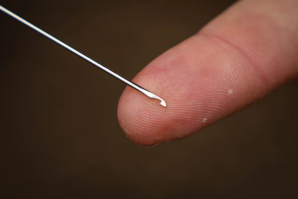 Jehla vhodná pro práci s fluorokarbonovými návazci s fluorescenční rukojetí v červené barvě pro skvělou viditelnost i v noci.