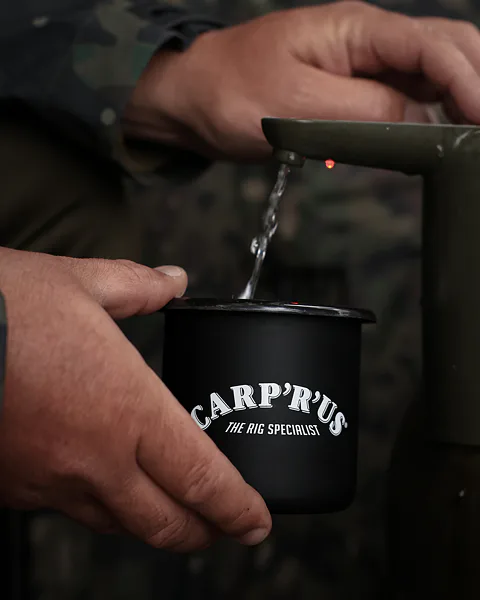Retro plecháček v matné černé barvě s logem Carp´R´Us.