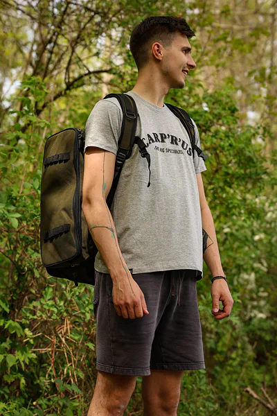 Stylové bavlněné tričko v šedé barvě s velkým logem Carp´R´Us na hrudi.