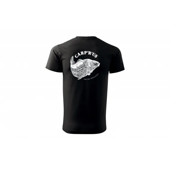 Stylové tričko v černé barvě, s logem Mouthsnagger na prsou a tradičním kaprem Carp´R´Us na zádech.