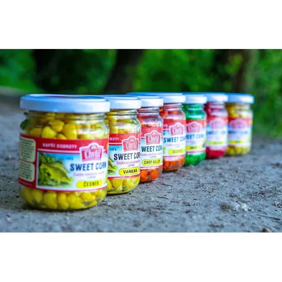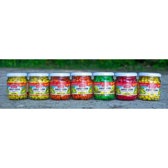 Sladká, nakládaná kukuřice bez nálevu. Jedná se o oblíbenou nástrahu pro lov kaprů a bílé ryby.