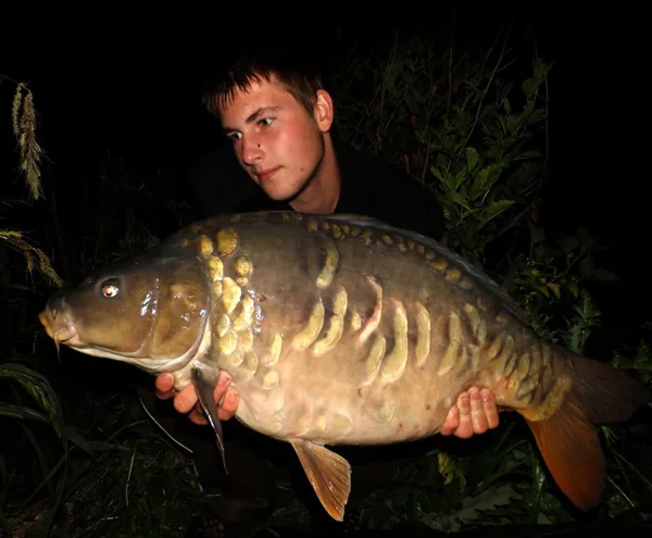 Záměrně si zvolili místo, které nebylo nijak hojně navštěvované, aby měli co největší šanci, že bude k večeru opět volné. Proto vždy ráno před odjezdem po vytažení prutů plošně zakrmili 2kg boilie Kill Krill v průměrech 18-24mm. Kapři se tam mohli přes den na místě s klidem přes den krmit a na místo se pravidelně vraceli. To se odrazilo i na ontenzitě záběrů, která vyústila třetí noc lovu až na 14 záběrů. Nejednalo se sice o velké ryby, ale klukům se podařilo zdolat několik pěkných ryb mezi 10-12kg. Mezi nimi byl i krásný plnošupinatý lysec, který udělal Martinovi velkouu radost.