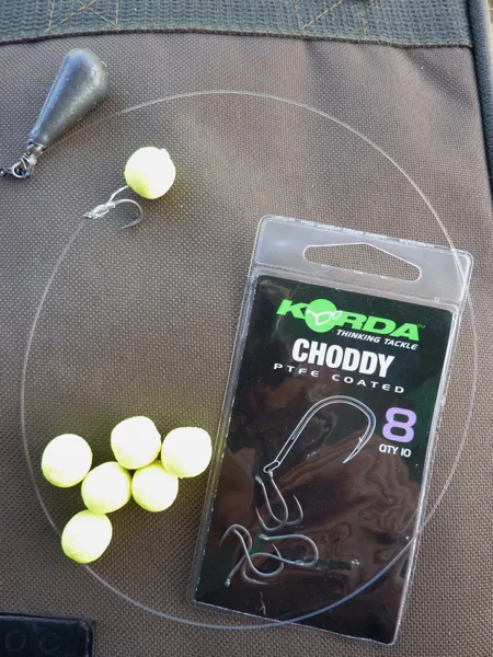 To mi však bolo jedno pretože to podľa odhadu bola najväčšia ryba, aká sa tam pohybovala a ja samozrejme "skromný" rybár som chcel chytiť hneď tú. Potichu som sa vzdialil od rákosia, a naviazal veľmi jednoduchú montáž. Na kmeňový vlasec som navliekol malé 25g olovko, malý obratlík č.8 a cca 40cm dlhú montáž z fluorocarbonu zakončenú háčikom choddy č.8.