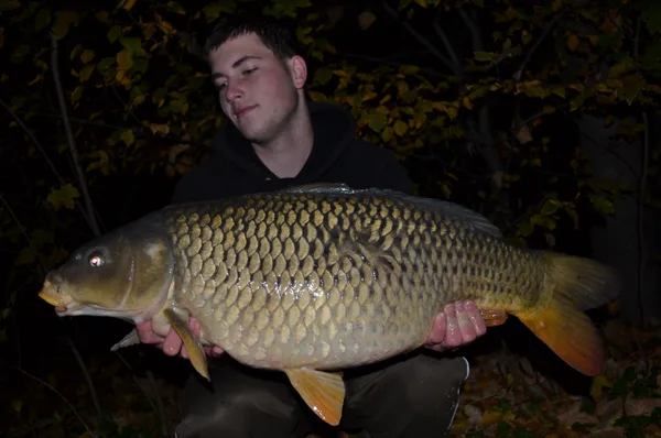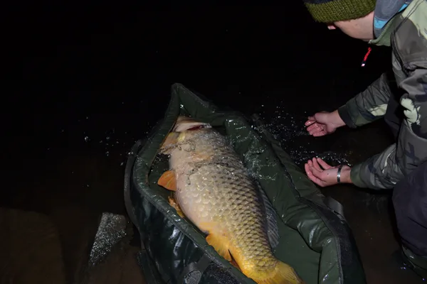 Zanedlouho se mu povedlo udělat další záběr. Když přišel k prutu, tak podle záběru si myslel, že tam má oběšeného cejna. Ryba také moc nebojovala, ale až u břehu se zažila trochu více méně bojovat. Ale už bylo pozdě. Martin navedl kapra Leošovi do podběráku. Byl to krásně stavěný kapr o hmotnosti rovných 12kg.