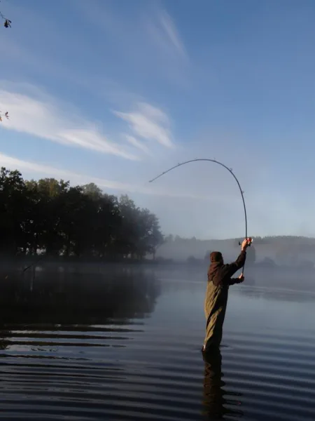 Katapultovali jsme tedy dva pruty do maximální odhozové vzdálenosti a po 5-ti minutách přichází první jízda. Za dalších 20 minut je tu další jízda. Naše šance roste. Kája okamžitě chystá všechny pruty, které na břehu máme.