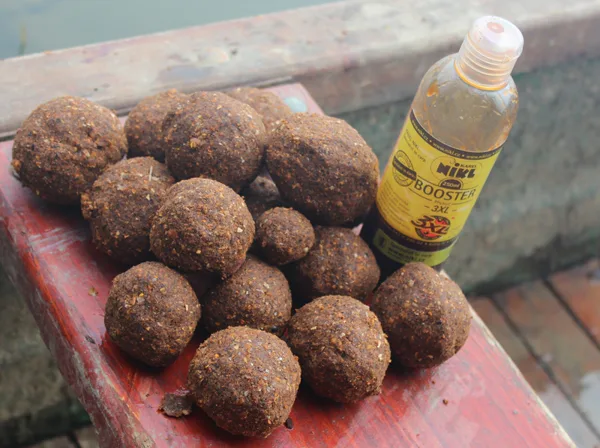 U vody jsem rychle rozbalil vše potřebné a vydal se hledat místa pro lov. Místa označená majákovou bojkou zakrmuji zatím zhruba půl kilogramem boilies Kill Krill atrakt a pár hrstmi Krill pelet, které zalévám boosterem.