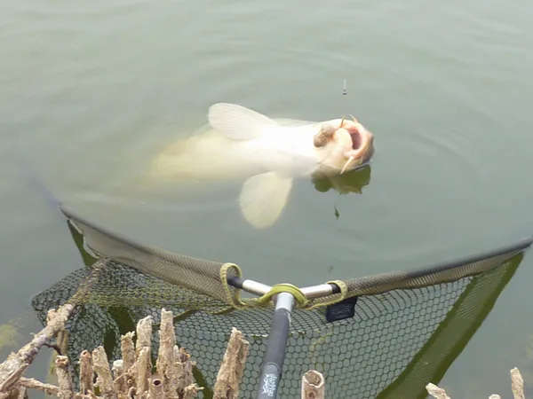 Keď sa ryba prví krát objavila pri hladine, začali znova komentáre o tom, ako som určite musel hneď po narodení stúpiť do h...a, alebo že som sa narodil z udicou v ruke a pod. Nič to však nemenilo na tom, že sa za nami na breh prišiel pozrieť ďalší s tých veľkých. Mal rovných 22kg a 99cm. Tento raz to bol šupináč...