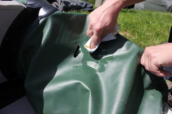 Nemilé překvapení na mne čekalo když jsme po zimě poprvé rozbalil svůj člun. Jedna komora člunu měla v plášti vykousanou díru od myšky že bych do ní prostrčil mandarinku. Dohodnul jsem se s kolegou, že on pojede na prohlídku svého sektoru, jako první a než se vrátí a půjčí mi člun, já na kapří bonbonek chytnu toho předvádějícího se kapra.