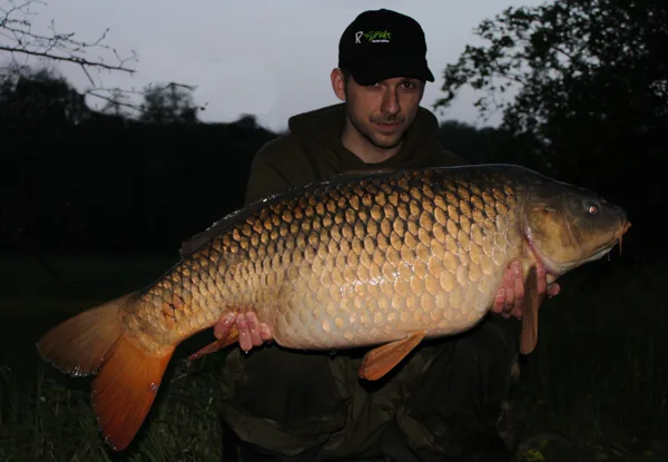 Prut s panáčkem se mi ozval necelou hodinu po nastražení a hned od prvního kontaktu jsem věděl, že mám na prutě velkého kapra. Klidná rozvážná jízda proti proudu, žádné trhavé pohyby, jak já říkám - „cítíte kila“. Když jsem po 10ti minutách poprvé viděl ocasní ploutev, věděl jsem, že mám splněno. Dlouhý šupináč vážící 15,7 Kg mi udělal ohromnou radost.