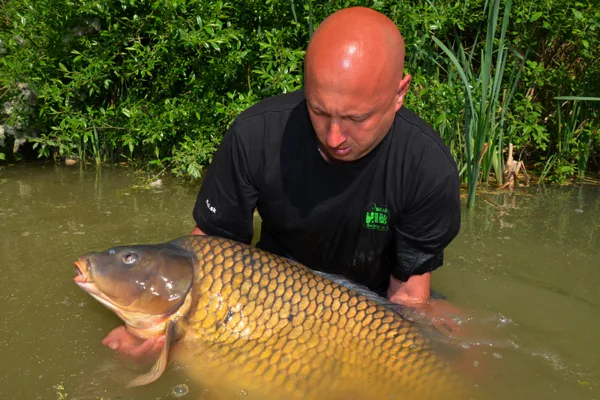 Po první noci však záběry ustaly a my byli 48 hodin bez záběru. To byl impuls pro Martina, který začal zkoušet, na co by místní kapříci mohli mít chuť. Během přípravy oběda si Martin všímá připraveného „tygřáku“, a tak se rozhoduje ořech vyzkoušet. Chvilinku „tygřák“ povařit a hurá pod háček. Dvacet minut po náhozu se ozývá Martinův hlásič a po chvíli je dobojováno. Šupináče vážíme, po odečtení vážící tašky rovných 21kg živé váhy. Konečně trofejní ryba, která nám kompenzuje veškeré naše úsilí. Rybu jsme se kvůli její bezpečnosti rozhodli fotit ve vodě, bohužel po pár snímcích došlo na Martinova slova a kapr se předčasně vrací pod hladinu. V každém případě nás tento úlovek velmi povzbudil a vlil nové síly do další práce. V noci se nám opět daří zdolat několik kaprů do 10kg.