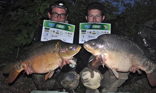 Na řadu musela přijít mnohem tvrdší zbraň než jen montáž ze silonu. Nasadil jsem tedy na svoje pruty návazce z 25lb šňůrky Smooth a postupně chystal i další nové montáže pro Michala. Záběry na sebe opět nenechaly dlouho čekat. Na břeh se v rychlém sledu podívali hned 3 kapři, přičemž jsem si stihli s Michalem střihnout i double.