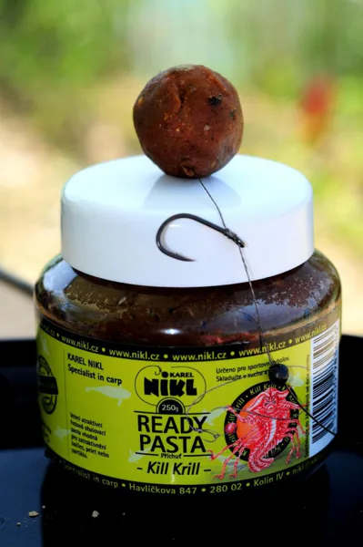 O to víc nás překvapilo, že místo malých průměrů boilies začali fungovat velké průměry. Abychom eliminovali záběry od menších kaprů, nezbývalo nám než přestat používat Kill Krila ve velikosti 18mm, ale rovnou jsme přešli na 2x24mm a výše. Mojí specialitou byl návazec háčkem Centurion velikosti 2, kde pod háčkem jsem měl boilies velikosti 24 a 35mm. Vzdálenost od háčku jsem nechával 5cm.