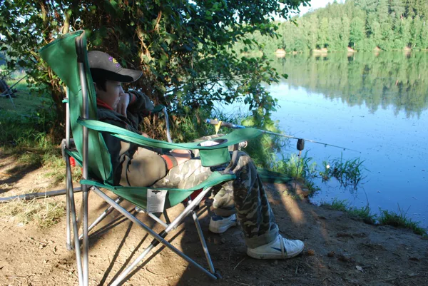 Děti, účastníci tábora nám již někteří pomohli s vybavením a tak vše netrvalo dlouho a do noci byli všechny udice na svých místech… Děti se uložily ke spánku a mi dospělí jsme do nočních hodin posedávali u prutů a klábosili o rybách, životě a tak dál…