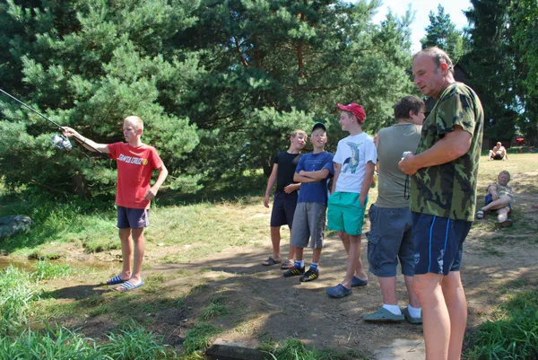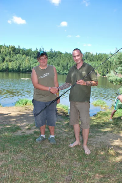 Společně strávený den utekl doslova jako voda a nezbývalo než pobalit všecko to rybářské vybavení, naložit vše do auta, rozloučit se s vedoucími, ale hlavně s účastníky tábora, se kterými jsme si za těch 24 hodin vytvořili určitý vztah a na rovinu opouštěli jsme seč spokojení, trošku smutně. Hlavně když si všech 24 dětí stouplo do řady a jednohlasně se s námi rozloučili, tak uznávám že mi jak se říká málem ukápla slzička. To ale byla pro nás právě ta odměna, to že jsme věděli a cítili že se dětem den s námi líbil a proto už dnes víme, že to rozhodně nebylo naposledy…