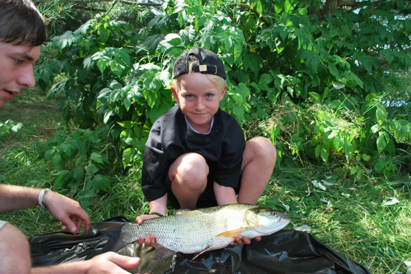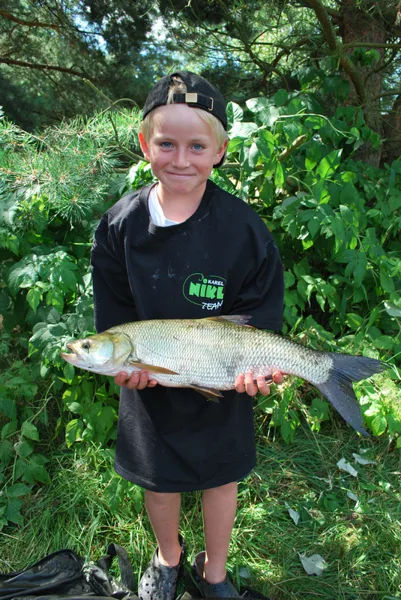 Po ukončení závodu, jsme se ještě s rudou rozhodli ukázat dětem jak úspěšně ulovit velké Boleny, kteří neustále atakovali hejna ouklejí pohybujících se v příbřežních oblastech a povedlo se. Dva pěkné boleny se nám nakonec podařilo přelstít a naši mladí pomocníci si s nimi před jejich puštěním z pět do vody mohli zapózovat před objektivem mého fotoaparátu.