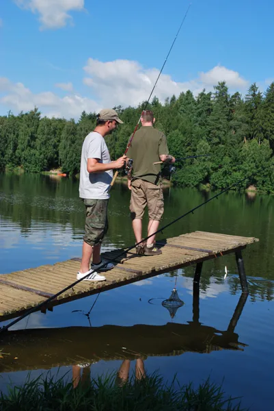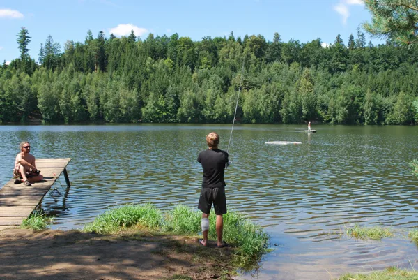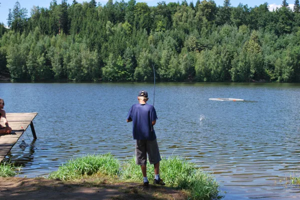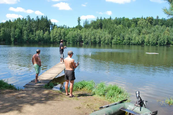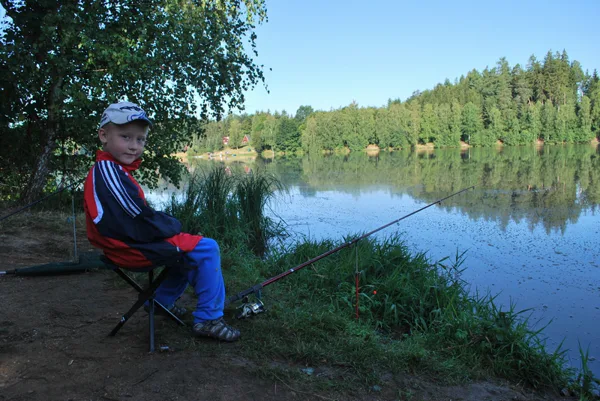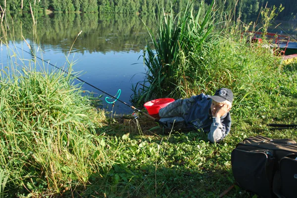 Na přehradu jsme dorazili v podvečer a po krátkém seznámení s vedoucím táboru a vedoucím rybářského kroužku v Čáslavi, panem Michalem Vlachem, jsme se s rudou pustili do práce. Chtěli jsme dětem ukázat současnou kaprařinu jako takovou a proto jsme připravili pruty na vyvážku, postavili bivaky, nachystali krmení a pustili se do chytání, ve snaze ulovit nějakého alespoň trošku většího kapra než zde běžně lovenou násadu, které je přehrada plná.