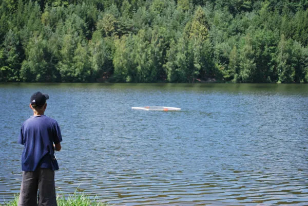 Bohužel se na této lokalitě příliš mnoho velkých kaprů nevyskytuje a hlavně když jste limitovaní výběrem místa na pláž přímo před osadou tábora. To nás však neodradilo a díky pomoci kamaráda Pavla Nováka a jeho přítelkyně Romči, jsme naložili potřebné věci do jejich člunu a vyvezli pruty daleko, až na samý protější břeh přehrady do skal, kde by měli mít kapři alespoň relativní klid. Přidal se k nám jeden z praktikantů tábora a tak jsme takto mohli do vody umístit 6 prutů.