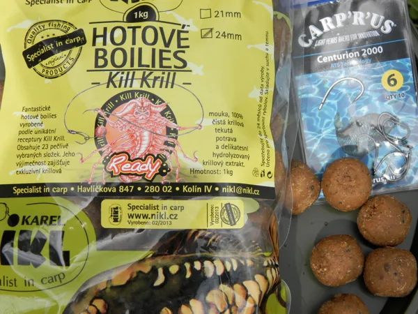 Montáže co jsem používal byly jednoduché, krátké, ztužené zakončené bud Centuriony nebo Gladiatory ATS vel. 6. Z nástrah jsem vyzkoušel naprosto vše co bylo v mé kabeli. Boiliesy, pelety, pasty atd.. v různých kombinacích.