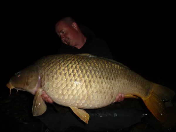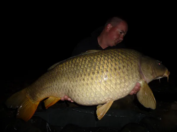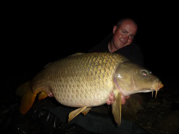 Opak bol však pravdou. Zasa sa dlho nič nedialo až do tretej hodiny ráno. Vtedy mi sa mi praví swinger jemne prilepil o prút a tam sa pohyboval centimeter hore dole a stále dookola. Tak som to zľahka prisekol. Cítil som síce na prúte určitú ťažšiu váhu, ale ryba sa nechala ku brehu priťahovať, ako pleskáč. Chvíľami som si myslel, že sa mi zavesil jeden z miestnych obrovských amurov. Keď sa však ryba vynorila, rozbúchalo sa mi srdce, pretože to nebol amur, ale kapor ako prasa. Hlavne čo sa dĺžky týka. Teda aspoň sa mi taký zdal. Podobral som ho hneď na prví raz.