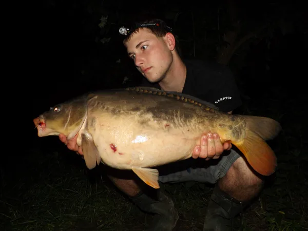 Po pár dnech jsem konečně chytil dvě lepší ryby, asi 8mi kilového lysce a šupináče těsně přes 10kg. Ráno před odjezdem jsem místo ještě dokrmil dvěmi kily Kill Krillu a KrillBerry a těšil se, jak večer znovu nahodím. Po návratu bylo mé místo samozřejmě obsazené, ale naštěstí místní rybář těsně před setměním odjel a já mohl rozbalit pruty a rychle nahodit. Dlouho se nic nedělo, ale nad ránem přišel napřed menší kapřík a pak další šupináč přes desetikilovou hranici.
