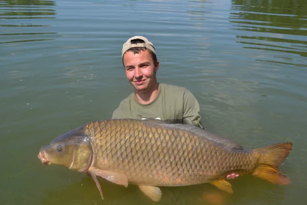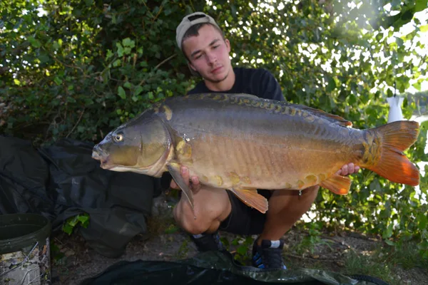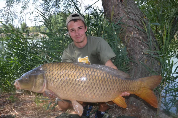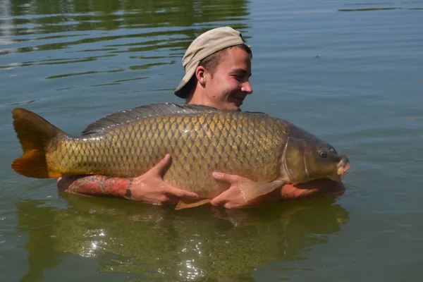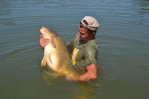 Po štyridsiatich minútach súboja sa už pomaly začínam modliť aby sa nevyrezal. Mohutná vlna na hladine nasvedčuje môjmu tušeniu. Na prúte mám rybu, ktorú som ešte v živote nevidel. Konečne ho dostávam do podberáku. Otáčam sa a snažím sa rybu vytiahnuť na breh. To však nejde. Celodenná „robota“ ma unavila na toľko, že už nevládzem. S vytiahnutím kapra mi nakoniec pomáha rybár, loviaci obďaleč. Spoločne vážime tohto obra. Váha ukazuje 25,65 kg živej váhy !!!!