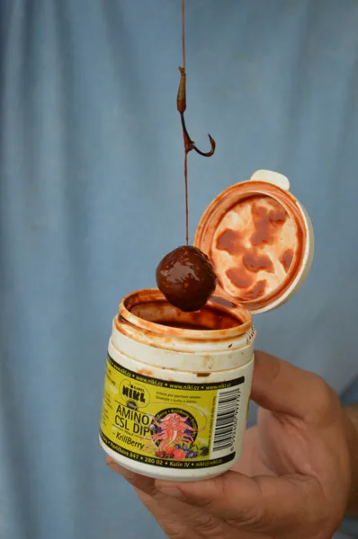 Oteplujúcou sa vodou kaprári vačšinou automaticky zväčšujú priemer nástrah. Ja som to tentoraz urobil presne naopak. Pod Longshang nailer ATS č.6 dávam Carp Bonbons Citrus, obalený cestom Krill Berry. Aj to tak trocha nezvyčajne.