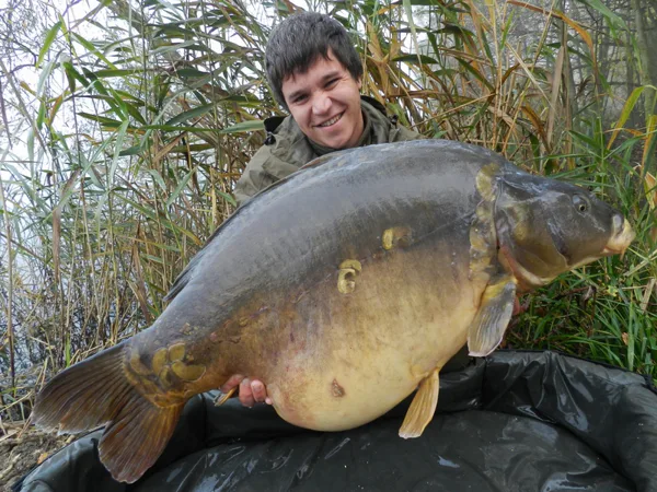 Cítím, že vlasec o něco zadrhává, 2x škubnu prutem a vlasec je volný. Kapr už je u břehu. Ouuuuu…. spatřuji neskutečně širokou rybu, jak se převaluje nad vodními rostlinami. Už ji chci mít v podběráku.