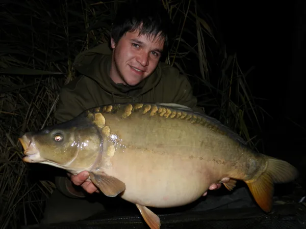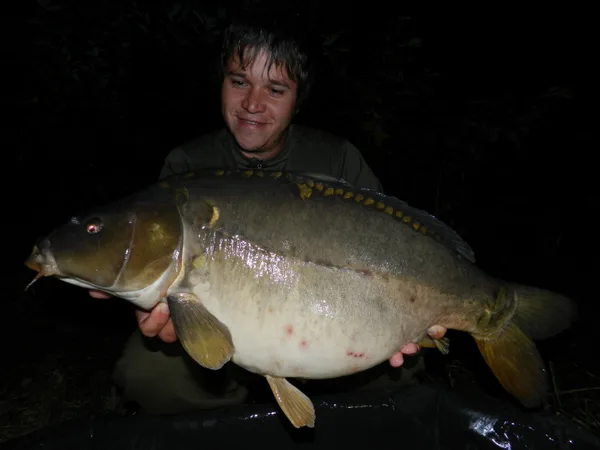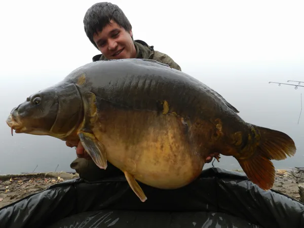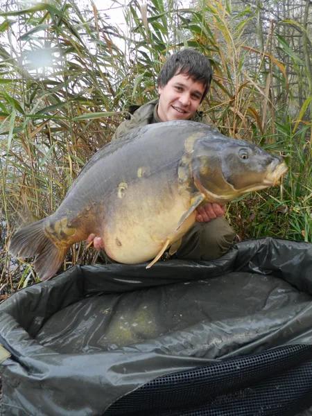 A je tam. Kapra dávám na podložku. Je hodně těžký. Váha se zastavuje na váze 24,09kg… Ty vole. Mám lysce 22,50kg. Je to opravdová kráska a zároveň můj největší kapr z Čech.