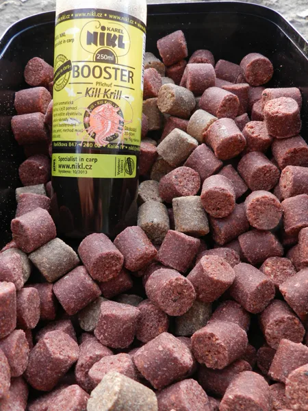Tak tomu se říká začátek výpravy. Telefonuji kamarádům a za čerstva vyprávím zážitky. Druhý den jsem se rozhodl zakrmit 5kg 18mm pelet KillKrill pořádně prolitých boosterem a Krillovým liquidem a do toho jen tak pocukrovat boiliem. Udělal jsem to s tím úmyslem, že jsem chtěl docílit většího počtu záběrů. Prostě jsem si chtěl zachytat. A to mi taky vyšlo.