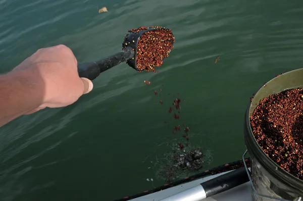 Zvolili jsme kombinaci boilies Kill Krill a slušné dávky řepky. Krmení jsme rovnoměrně rozprostřeli v asi 30ti metrovém pásu, do kterého jsme nahodili všechny naše nástrahy. Pak už jsme se fyzicky vyčerpaní svalili na lehátka a po únavné cestě si konečně dopřáli trochu spánku. Během prvních 36ti hodin se nedělo nic.