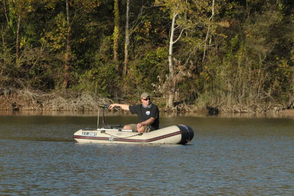 Po nekonečně dlouhé cestě následuje nutné zakoupení povolenek v rybářském obchodě a doplnění nezbytných zásob potravin a pití. Po příjezdu k vodě jsme se u vody díky podrobně nastudovaným mapám rychle zorientovali a zamířili na předem vytipované místo. Rychle jsme nafoukli menší člun a zvolenou oblast před vázkami provnadili.
