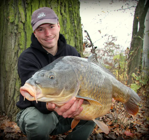 Záběry přicházely neustále, ale větší kapři mé nástrahy ignorovali. Vše se zlomilo poslední den výpravy. Swinger se třikrát po sobě propadl a zůstal na místě. Říkám si:"Zase cejn"..., ale ono ne. Po záseku se mi ohnul prut a bylo jasné, že cejn to není v žádném případě. Boj probíhal standardním způsobem, chvíli měl navrch kapr, chvíli já a po deseti minutách na mě kapřík koukal z podběráku.