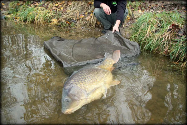 Odhadoval jsem ho na 13-14 kg, o to větší bylo mé překvapení, když jsem mu navážil 16,10 kg. Měl neskutečně nacpaný pupek mým boilisem a to z něj na podložce jen teklo. Po pár fotografiích jsem ho odnesl zpět k vodě, rozloučil se s ním a pustil ho zpět do jeho vodního světa. Svatý Petr stál opět při mě a připravil mi krásnou tečku za letošní sezonou.