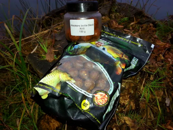 Odhaduji směr pohybu hejna a rychle se rozhoduju, několik hrstí volné návnady boilies Kill Krill průměru 24mm letí za pomocí Bumerangu do vody, v závěsu za návnadou následují udice. 5minut..Kapři se pomalu přesouvají nad mojí pozici..10 minut. Záběr! Rybu odhadem 8kilo rychle odepínám v podběráku a pouštím. Přehazuji. Nestačím však dopnout vlasec. Rozjíždí se druhý prut.