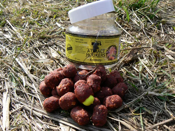 Na druhý prut pod háček Centurion 2000 ATS vel.8 volím Attract Hookers KrillBerry doplněné 12mm bonbonem Pineapple & Butiryc a celé obaluji v Ready pastě. Prut nahazuji kousek dál od větví a přihazuji pár kuliček kolem.