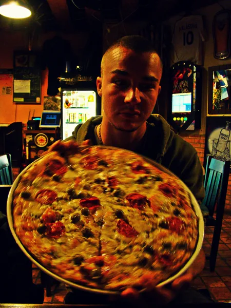 19:00 – Konečne v pizzérií. Dopriavame si pizzu s olivami, salámou, šunkou, syrom a ďalšími dobrotami vo veľkosti XXXL.
