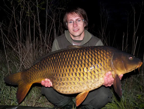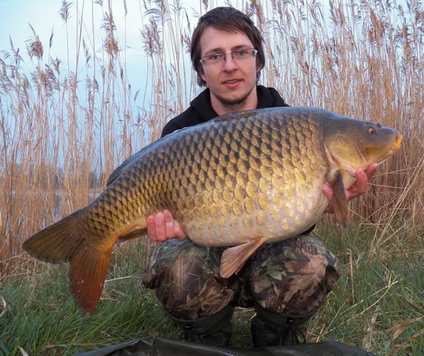 Když jsem si byl v zimě revír obhlídnout, našel jsem zde pouze jedno mělčí místo. Rozhodl jsem se, že to zkusím právě tam. Jakmile počasí jen trošku dovolilo, začal jsem tuto mělčinu lehce prokrmovat směsí řepky, pelet Kill krill a KrillBerry a postupně jsem do krmení přidával i čím dál více boiliesu stejné příchutě. Na ryby jsem jezdil pouze na nočku, ale i když jsem to zde zkoušel několikrát zůstával jsem bez záběru. To přisuzuji hlavně chladné vodě, která ještě v půlce dubna dosahovala v 5 metrech pouhých 6 stupňů. Až po měsíci snažení jsem se zde dočkal prvního záběru a na podložce mi skončil hezky stavěný 10,5 kg vážící šupináč.
