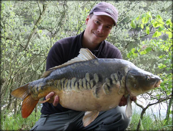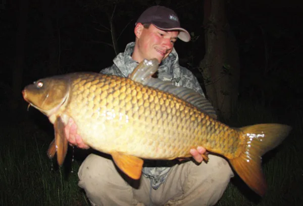 První záběr se dostavil již za hodinu a půl. Odměnou byl místní kapří dorostenec. Ihned po zavežení se mi rozjel druhy prut. Tentokrát to byl nádherný „řádkáč“, který vážil 10,6 kg. Ještě nikdy jsem tak velkého „řádkáče“ nechytil, takže jsem z něj měl obrovskou radost. Vždy po zavezení jsem kolem montáží rozházel cca. 20 – 30 kuliček, tak aby na moje boillies narazil více než jeden kapr.