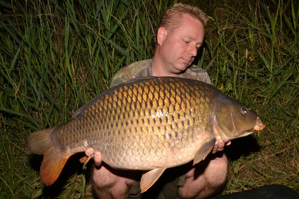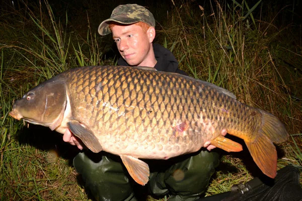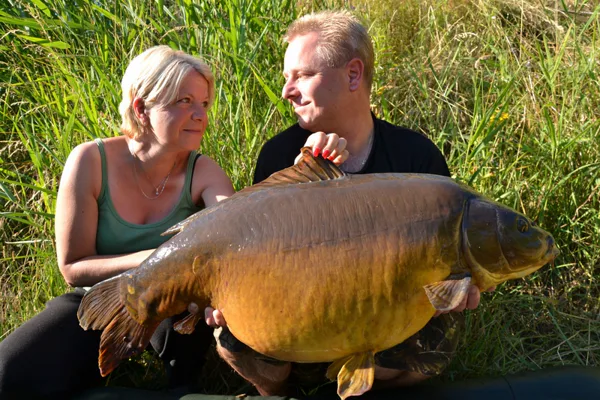 Ze začátku nám přálo počasí a kapři do 10kg byli velmi aktivní . Po třech dnech se na podložce ukázali celkem 4 kapři nad 10kg (10kg,11kg,12kg,13,20kg a 14kg). Teplotně šlo počasí nahoru a tak ustávali i záběry. Táta si prvních 9 dní opět vybral smutnou pasáž výpravy, kdy se mu sice záběry nevyhýbali, ale byli vesměs od cejnů a malých kaprů. Zajímavé bylo, že tyto záběry měl pouze na jeden prut. Druhý jako by nebyl, až do devátého dne, kdy se konečně rozezněl hlásič naplno. Táta bez větších potíží k mému údivu přitáhl kapra až ke břehu, kde jsem ho v klidu podebral – kapr i táta byli tak překvapeni, že nedošlo ani k žádnému boji. Po zvážení a odečtení vážící tašky od Trakkeru měl táta rázem největší rybu výpravy s váhou 17kg. Byl to parádní vysoký lysec. Proběhlo pár fotek a kapr plaval zpět, tam kam patří. Aktivita ryb se ze vzrůstající teplotou klesala a tak jsme vymýšleli všechno možné jak se dostat kaprům na kobylku.